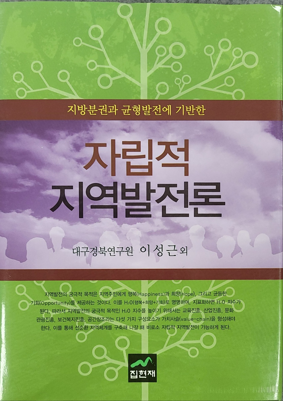 "H2O 지역개발론"은 이성근・김보영・박은희・임성호・안지민 5인 공저로 2012년에 출판사 집현재에서 출판하였다.